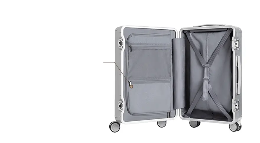 En el interior, la Xiaomi Aluminum Frame Luggage 26″ ofrece un espacio amplio y organizado, con